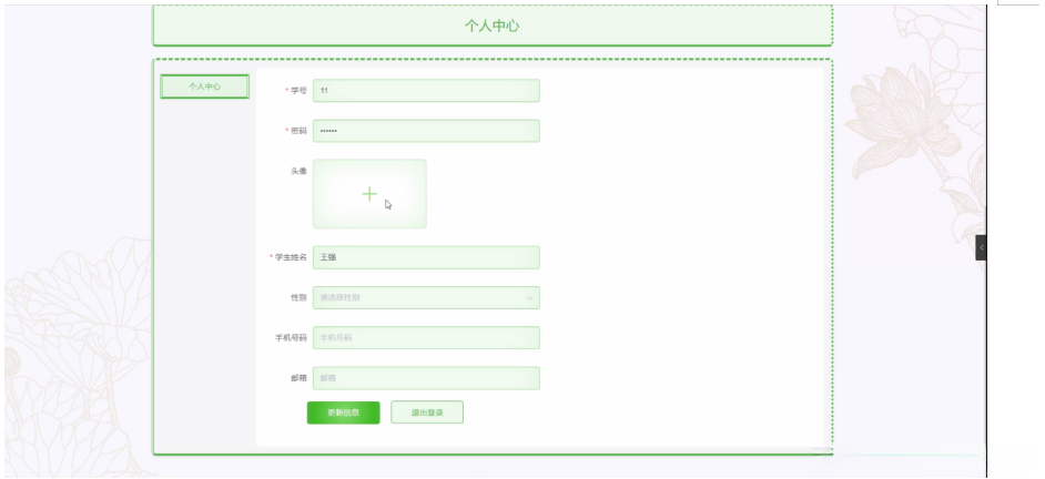 在个人中心页面输入个人信息可以进行信息更新,如图5-4所示: