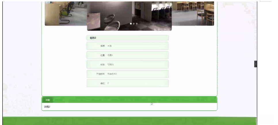 请访问自习室页面,在其输入栏中依次填写自习室名称(名称)、占据面积(规模)、位置坐标(位置)、当前状态(状态)、开放时间(开放时间)及座位数量(座位),以便检索相关信息。系统将自动生成详细的资料记录,并允许用户将感兴趣的内容保存为个人记录。如图5-2所示: