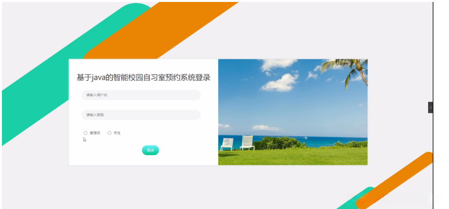 该智能校园自习室预约系统基于权限划分设置了不同类型的用户角色设定, 包括管理员与学生两类主要成员。对于已经注册并存档的账号, 用户必须通过特定渠道完成注册流程, 在完成账号信息录入的同时, 也需特别注意输入系统的密码安全问题, 同时还需要在账号创建过程中选择所属的角色类别, 登录成功后系统将自动根据用户的权限类型引导至相应的功能页面
