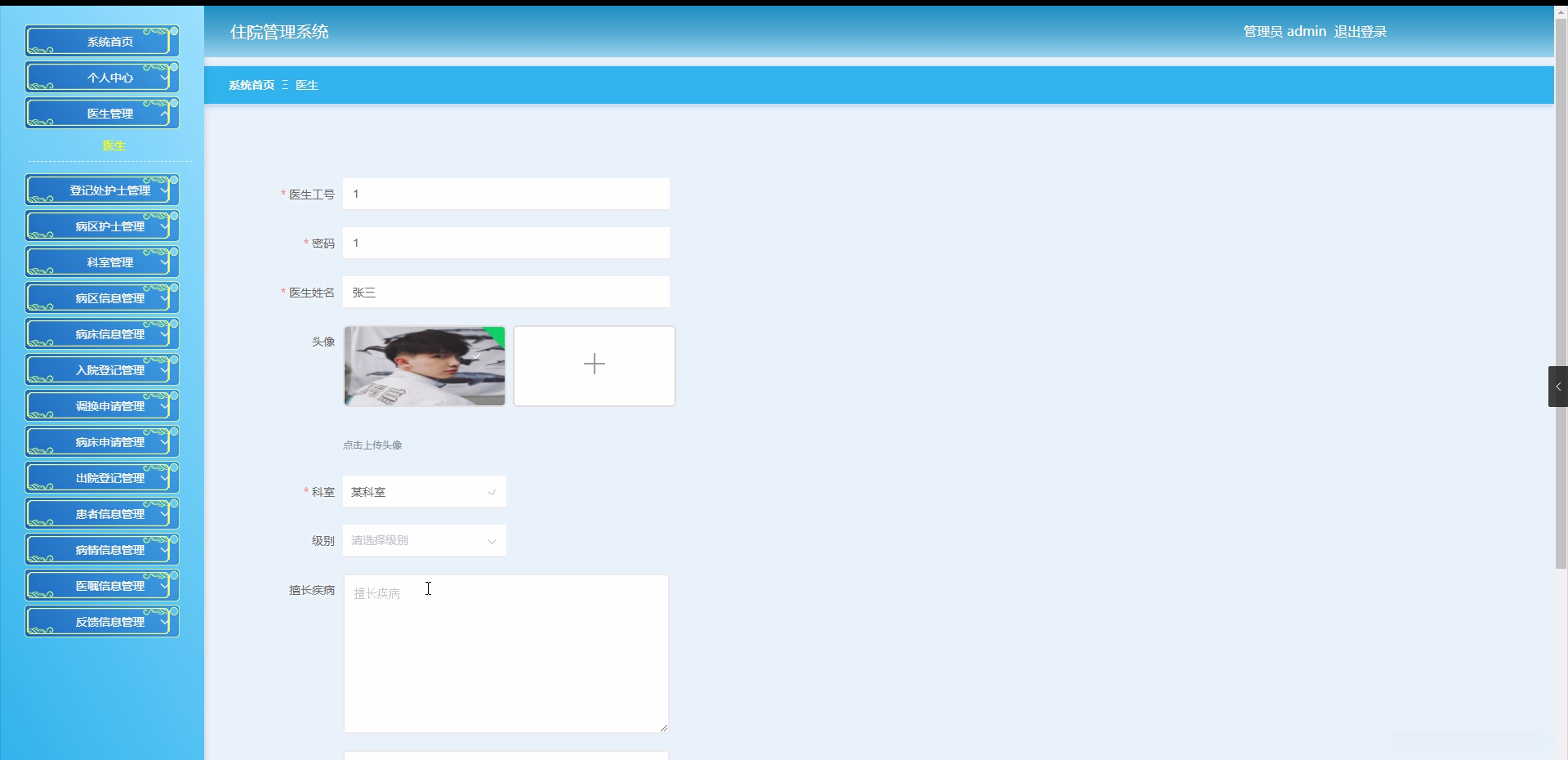 研究背景: 随着医疗行业的快速发展,住院治疗作为医疗服务的重要组成部分,其管理效率和质量直接关系到医院的运营效益和患者的治疗效果。传统的住院管理模式存在信息不畅通、资源分配不合理、服务质量难以保证等问题。因此,建立一个现代化的住院管理系统,对于提升医院管理水平、优化资源配置、提高患者满意度具有重要意义。