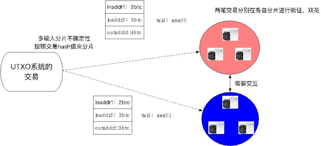 在基于UTXO的记账系统中一单交易很可能包含多笔输入和多笔输出。我们难以根据地址划分一单交易以有效规避双重花费问题。最直观的方式是依据其hash值尾部数字来进行划分。