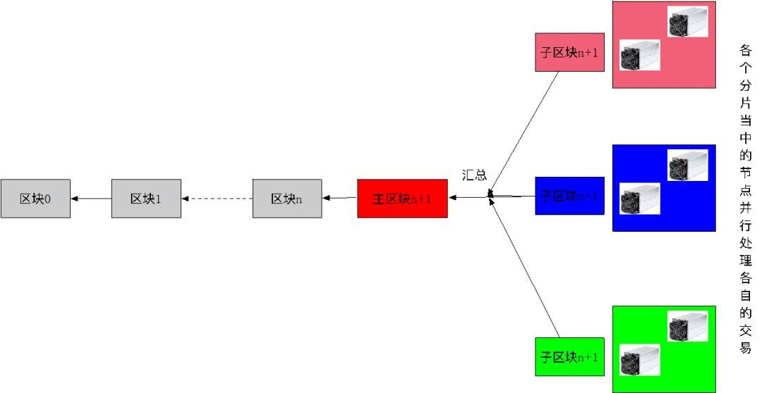 整个流程主要包括以下几个关键环节:每个分片内部包含多个节点,在线作为分片验证人;采用POS机制进行交易验证工作;随后会生成一个校对区块;其中的具体内容是其头部字段信息被注入到主链中;需要注意的是,在此过程中具体发生的交易记录不在主链上存储。