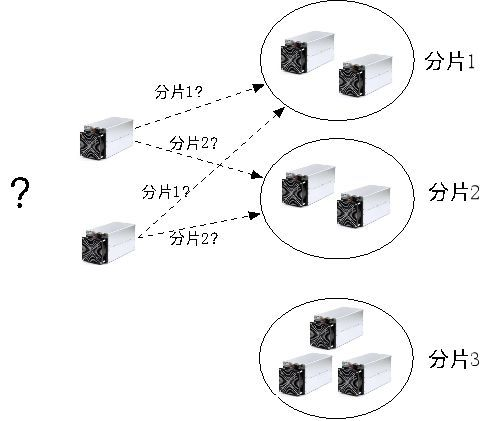 假设我们有4个分片,那么我们就按照交易hash值的最后两位比特进行分片。例如,一笔交易的hash值最后两位是10,则我们将该交易分配到第3个分片中进行处理(两位比特的值00,01,10,11分别对应于第1、2、3、4分片区)。