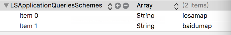 在info中在LSApplicationQueriesSchemes下添加iosamap,效果如下图: