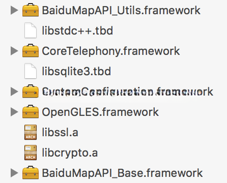 在项目中会依赖百度地图的两大框架来实现相关的功能定位需求。获取链接请参考以下地址:http://lbsyun.baidu.com/index.php?title=iossdk/sdkiosdev-download。