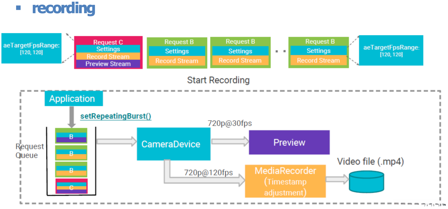 相机不支持每帧控制,因为设置与实际捕获到的图像数据之间无法准确同步。设置的变化可能在未来一段时间内生效,而且可能在不同的输出帧上生效。快速的设置变化可能导致某些设置在一次捕获中从未使用。然而,包含高分辨率输出缓冲区(>1080p)的捕获必须严格按照设置进行(下文将介绍处理速率)。