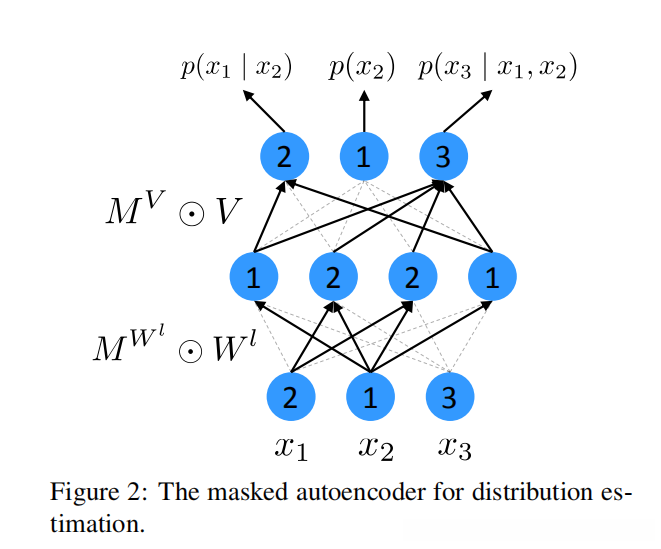 1).slot-value pairs 不具备单一的定向关系,虽然是并行描述语义,但是只用slot-value pairs 这描述一句话的语义也不太合适;但是slot-value pairs 也不是独立的,在句子中也会跟一些独立的词相关;比如:French food would probably costs more.因此也要把这种情形纳入联合概率分布中;所以也要对slot-value pairs的依赖关系建模;所以这里采用了masked Autoencoder拟合边缘分布;