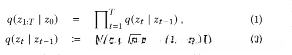 假设我们有一个来自分布 𝐷(𝑧)的样本 𝑧0。使用前向马尔可夫扩散过程 q,在𝑇迭代过程中逐渐向潜在向量𝑧0 中添加高斯噪声,不同的水平𝑡∈{0,1,...,𝑇} 如下: