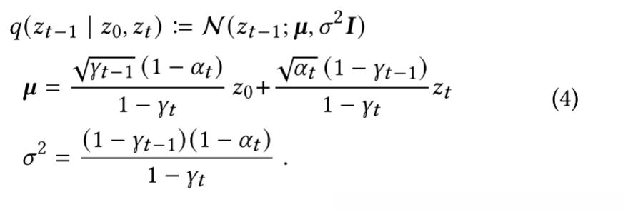 将估计值 ˆ𝑧0 代入𝑧𝑡-1|𝑧0,𝑧𝑡 的后验分布,即可将𝑝𝜃 (𝑧𝑡-1|𝑧𝑡, 𝑦) 的均值参数化为: