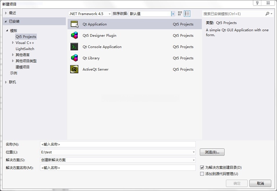 1. 打开vs2012,创建新项目,选择QtApplication