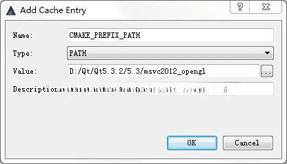 单击cmake界面上方右侧的AddEntry按钮以设置CMAKE_PREFIX_PATH选项,并在其中将TYPE属性设为PATH类型。