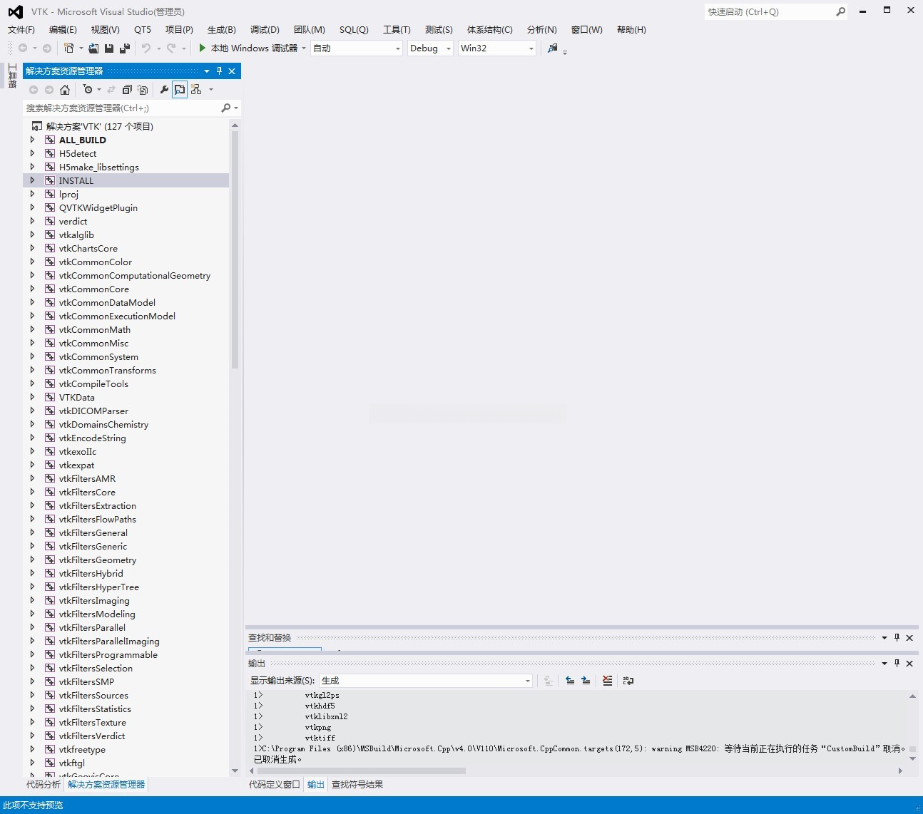 在你的编译文件夹中(D:\VTK6\VTKBin2),请定位到VTK.sln文件,并以管理员身份启动以便顺利进行两次编译操作。