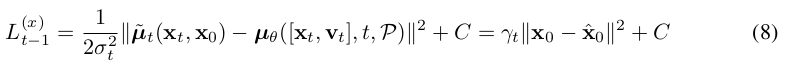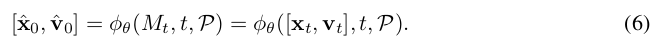 网络能够预测去噪后的 [x̂0 , v̂0 ]。