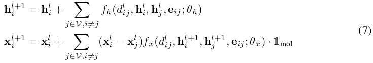 Within the l-th layer, the atom hidden embedding h and coordinates x are alternately updated in an alternating manner as described below.