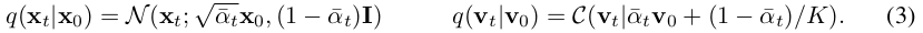 我们发现,在实际应用中时间表可能会有所变化。然而为了保持简洁我们将联合分子分布分解为扩散过程中的两个独立分布的乘积这是因为这些独立分布具有简单的数学表达式从而能够有效地提取噪声样本。在后续章节中我们将探讨模型如何在生成过程中考虑到原子坐标与类型之间的相互作用