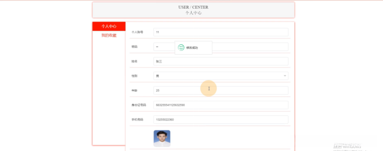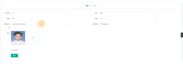 请在个人中心页面的"个人中心"模块中根据填写的账号信息、姓名信息、性别信息、年龄信息以及身份证号码等详细信息完成修改操作。