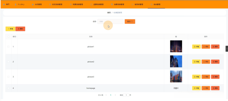 在轮播图管理页面中进行系统管理的相关操作,在此过程中可以查看相关参数设置情况;其中涉及的索引、名称和数值信息是基础要素,并根据实际需求可以在该基础上完成相应的资讯处理
