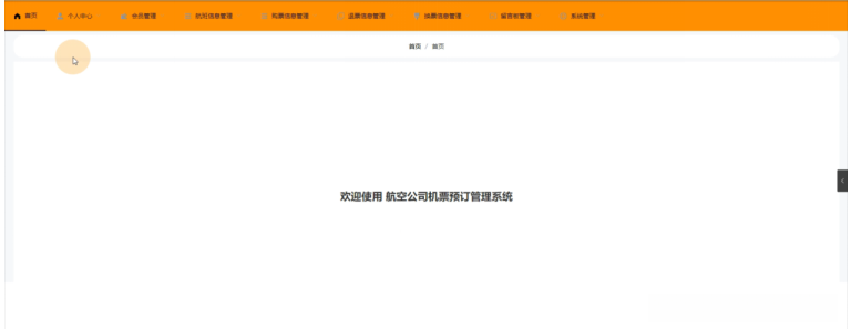 系统管理员通过合法权限接入到航空公司机票预订管理系统后可进行各项操作,并可浏览首页、个人中心、会员中心等业务模块中的相关信息,并访问航班信息管理等核心业务模块的数据(如图4-7所示)。