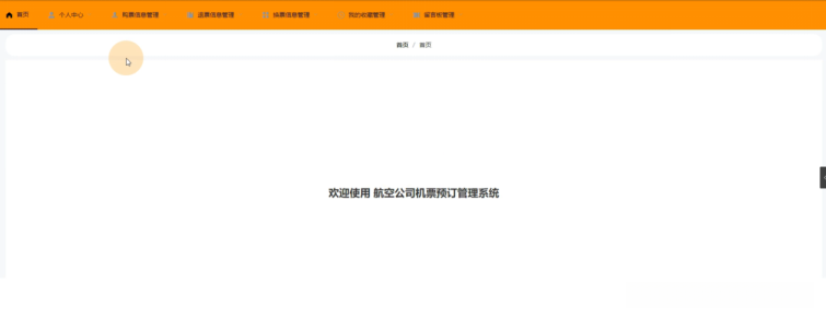 当用户登录该航空公司的机票预订管理系统时,在首页以及个人中心中可以浏览一系列功能模块包括购票信息查询与管理退票信息处理与查询换票信息核验与处理等具体内容