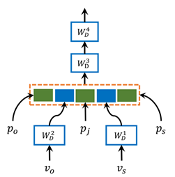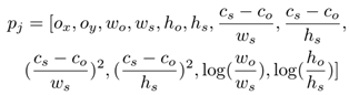 输入涉及主语及宾体的类别向量与边界框的信息;其中p_o与p_s分别代表主体及其客体边界框的坐标参数;而p_j则记录了两组边界的相对位置关系及详细信息。
