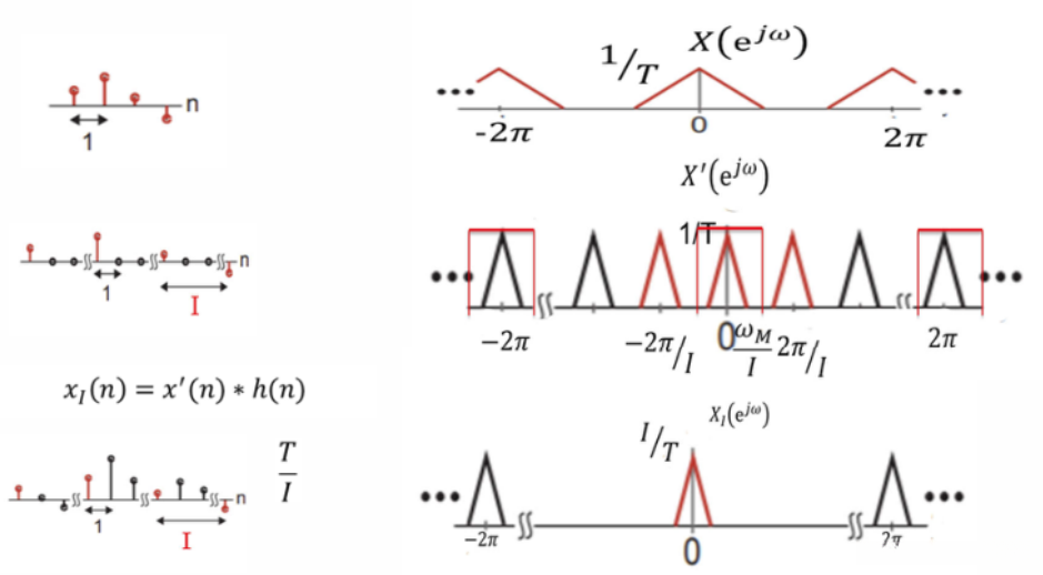 - 尺度变换:通过将x(n)采样为x(mn)实现时间压缩,在时间扩展时采用x(n/m)的内插方法;