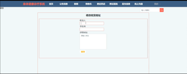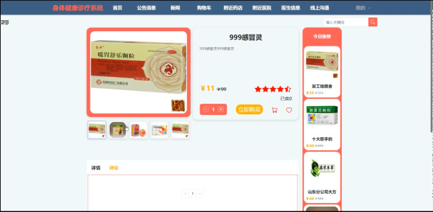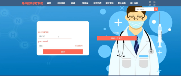 This design mainly realizes the physical health diagnosis and treatment system with the advantages of humanization, high efficiency and convenience, and completes the functional modules such as user management, drug management, classified list, order list, body information, nearby pharmacies, nearby hospitals, doctor information, online communication and so on. The system communicates with the server through the browser to realize the interaction and change of data. You can operate the system and realize data communication management by moving your fingers through a computer. The safety, stability and reliability of data are fully considered in the design process of the whole system, and the operation process is simple. Through scientific management and convenient service, the system improves work efficiency and reduces errors and omissions in data storage.