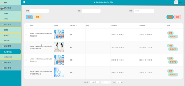 身体健康诊疗系统中的管理人员在“更多管理”这一菜单下是可以对身体健康诊疗系统内的身体信息、附近药店、附近医院、医生信息、线上沟通进行管控的,其管理界面如下图4-10所示。