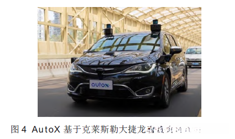 2020 年,AutoX 获上海新规2.0 后的首批牌照,并开启第三代的RoboTaxi 在沪对外公开载人示范应用,标志了上海首批自动驾驶出行对外开放运营,覆盖嘉定区主要城市路段。2022 年9 月1日,上海自动驾驶出行对外开放运营新增投入服务车型为搭载AutoX Gen5 的AutoX 第五代RoboTaxi—克莱斯勒FCA 大捷龙,如图4所示。该车搭载有其自研的核心计算平台AutoX XCU和自动驾驶域电子电气架构,算力达2200 TOPS,实现了车规级别功能安全的全栈架构冗余。该车还具备由国际车企巨头克莱斯勒FCA 深度合作打造的车规级冗余线控,也是中国首个可量产真正无人驾驶的车型。