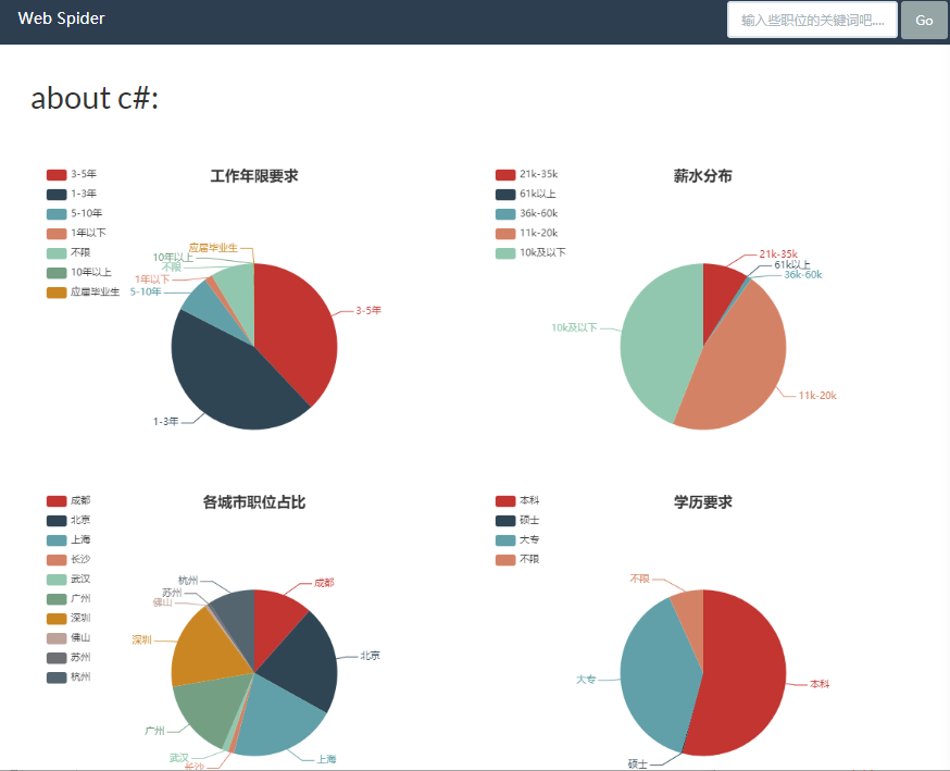 本项目使用的编程语言是python3,数据库用的是MySQL, 主要用到的库是celery和requests,并实现了定时任务,出错重试,日志记录,自动更改Cookies等的功能,使用ECharts + Bootstrap 来构建前端页面。