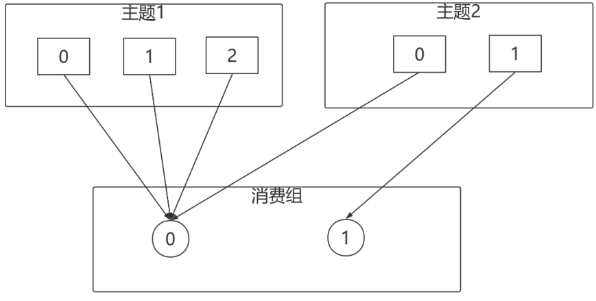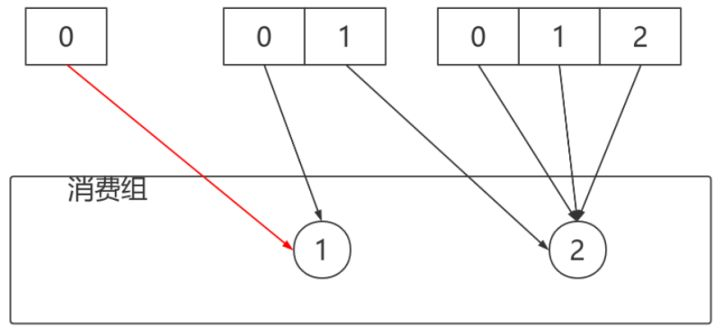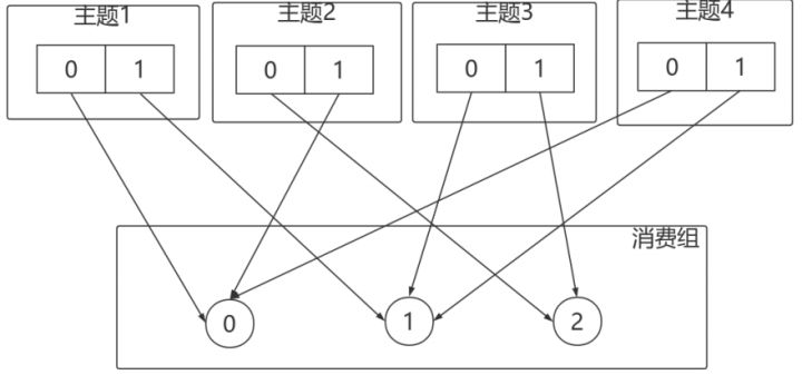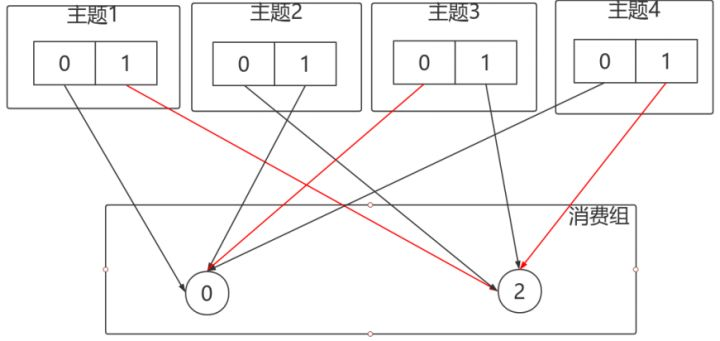 消费者0下线,则按照轮询的⽅式分配: