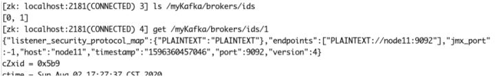 | [root@node11 ~]# kafka-server-start.sh /usr/src/kafka_2.12-1.0.2/config/server.properties |