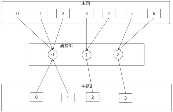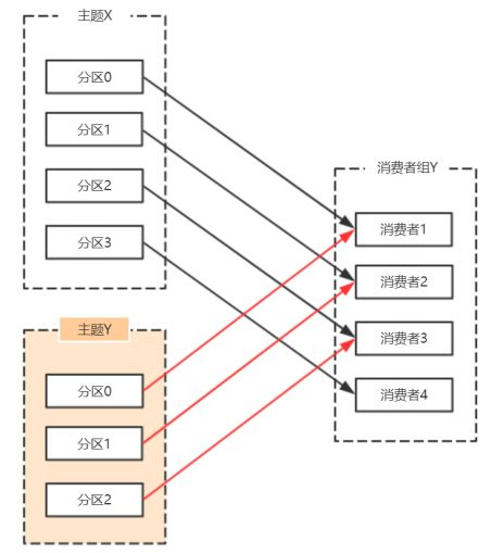| // 额外有⼀些Consumer会多分配到分区 | |