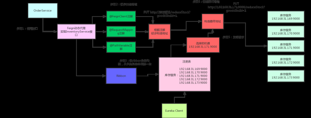 Ribbon通过轮询实现了客户端的负载均衡,而与Ribbon不同的是,Feign是一个声明式的Web服务客户端, 使得编写Web服务客户端变得非常容易,只需要创建一个接口, 然后在上面添加注解,像调用本地方法一样调用它就可以,而感觉不到是调用远程方法。SpringCloud中Feign默认集成了Ribbon,并和Eureka结合,默认实现了负载均衡的效果。