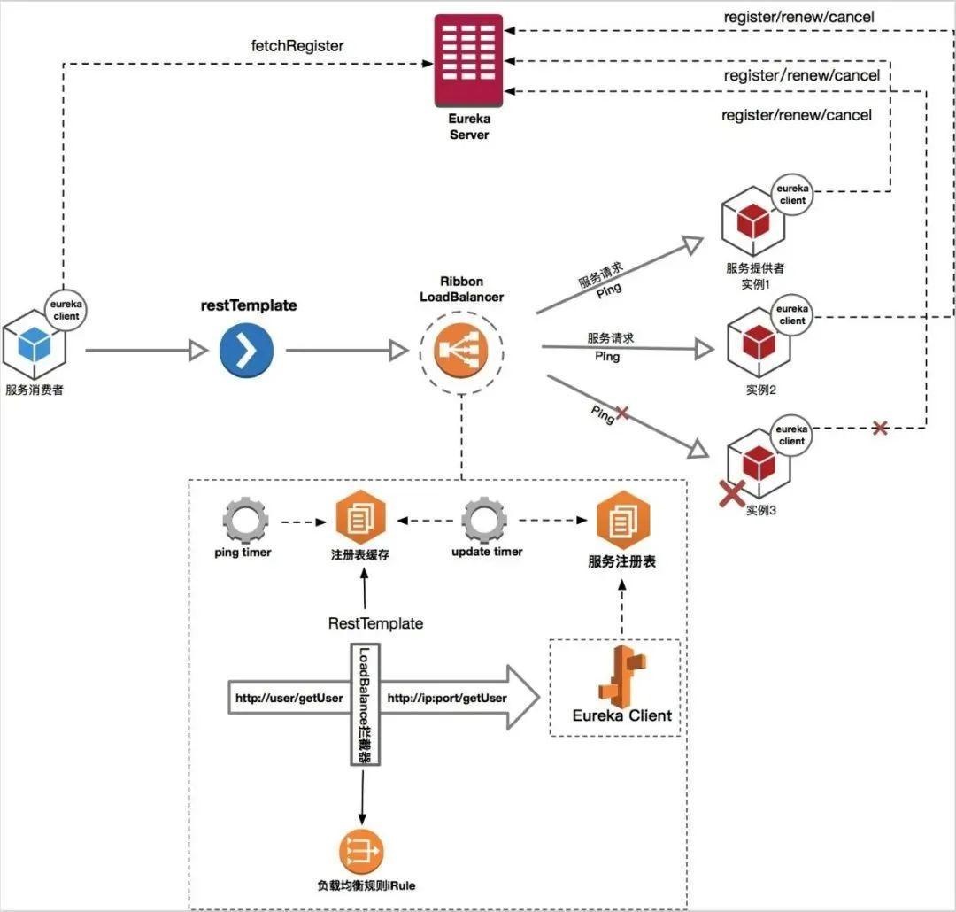 因此, Eureka可以很好的应对因网络故障导致部分节点失去联系的情况,而不会像ZooKeeper那样使整个注册服务瘫痪。