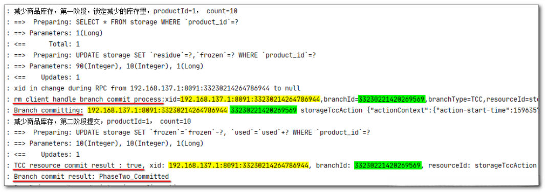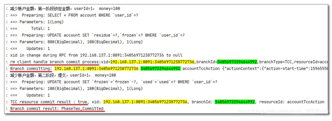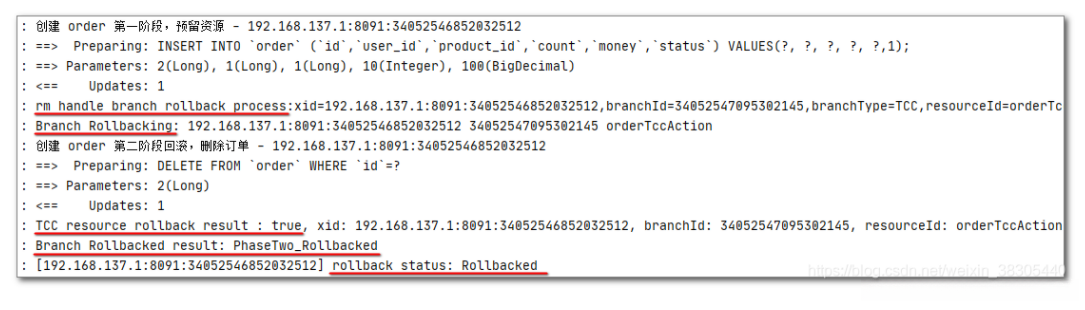 log.info("减少账户金额,第二阶段,回滚,userId="+userId+", money="+money);