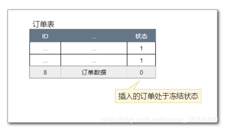 Try - 第一阶段:锁定数据阶段,在订单表中执行直接插入操作以更新数据库记录,并将订单状态字段赋值为0(锁定状态)。