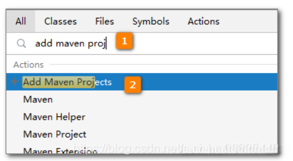 在 idea 中按两下 shift 键,搜索 add maven projects,打开 maven 工具: