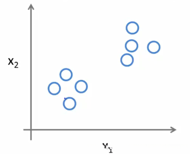 在非监督学习中学习算法会将数据集自动地根据数据集来抽出一组结构 来将数据集分为若干组 (clustering 聚簇)。