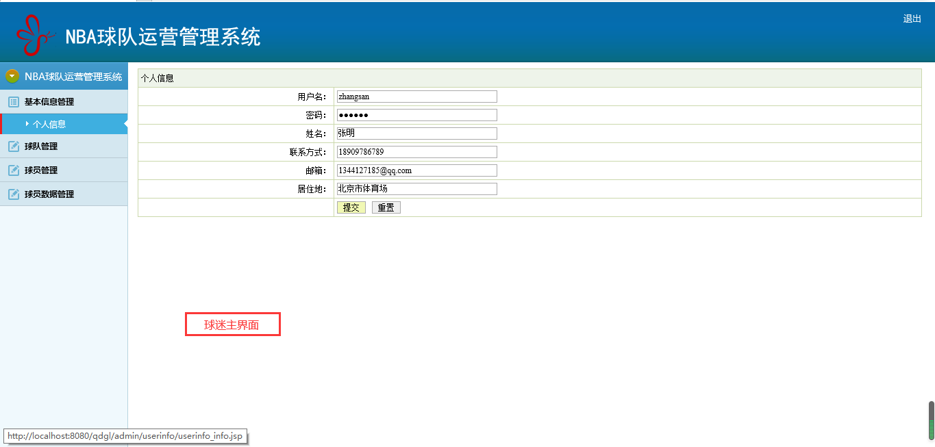 基于ssm的NBA球队管理系统包含管理员和球迷角色,功能分别如下: