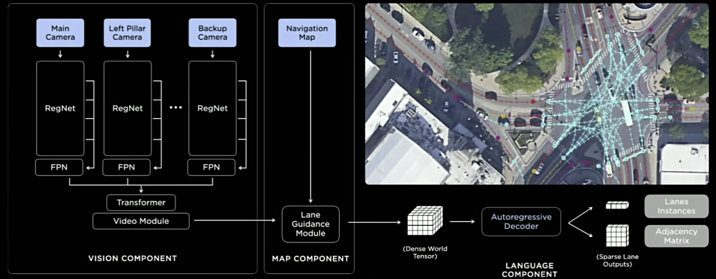 在2019年4月时, 特斯拉推出了其第三代自动驾驶系统,这一系统完全摒弃了基于英伟达DRIVE PX2平台的技术架构,并正式推出了全视觉辅助驾驶功能(FSD).该系统的感知硬件由一个前置毫米波雷达阵列以及八个高清摄像头组成,并配备有十二个超声波传感器用于辅助判断.到2021年5月,这一技术方案发生重大调整,取消了原有的前置毫米波雷达阵列,仅保留了八个高清摄像头和十二个超声波传感器.这八个摄像头分别部署于车辆前方三个位置(朝前、左侧和右侧),并各配有两个向前方和后方方向拍摄的摄像头.尽管系统中配备了十二个超声波传感器,但它们的作用范围主要集中在车辆停泊场景下的物体探测上,例如自动泊车功能或辅助导航等.然而在高速行驶的情景下,这些超声波传感器的效果则大打折扣,因为它们的工作距离仅限于8米以内且反应迟钝.因此特斯拉选择将注意力集中在八颗高清摄像头上进行感知工作.这些摄像头能够采集图像并生成视频流数据,而计算资源则主要负责处理来自这八颗摄像头的视频数据流.值得注意的是虽然Model3搭载了三颗超高清主摄像头(65美元起的价格)但特斯拉并未将其作为核心感知系统而只是作为辅助成像设备使用.这种设计理念使得其车载计算资源(SoC)的核心任务聚焦于视频感知算法的支持工作而非复杂的硬件组合方案