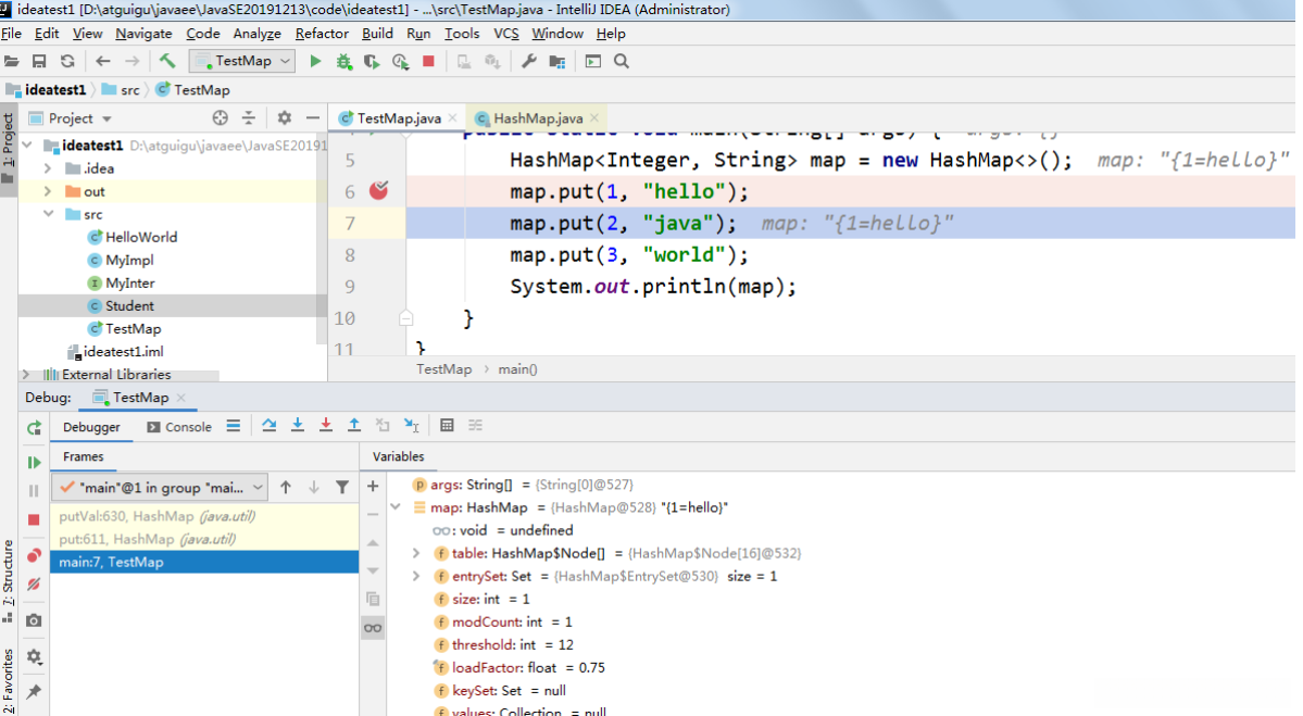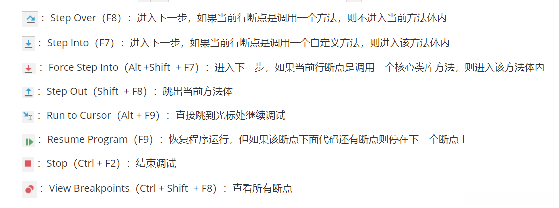 - Description: 演示1:行断点 & 测试debug各个常见操作按钮