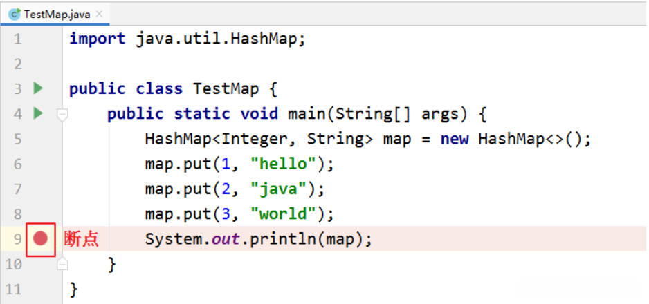 简单来说,在可能发生错误的代码的前面加断点。如果不会判断,就在程序执行的起点处加断点。