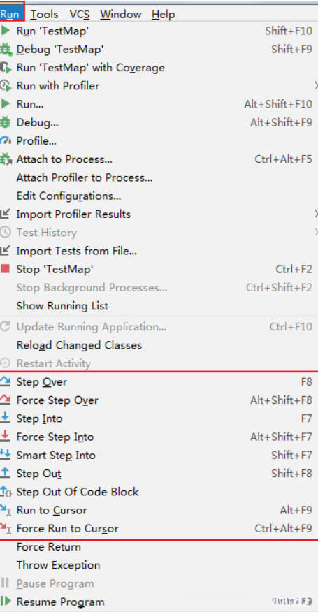 DEA提供多种方式来启动程序(Launch)的调试,分别是通过菜单(Run –> Debug)、图标(“绿色臭虫”