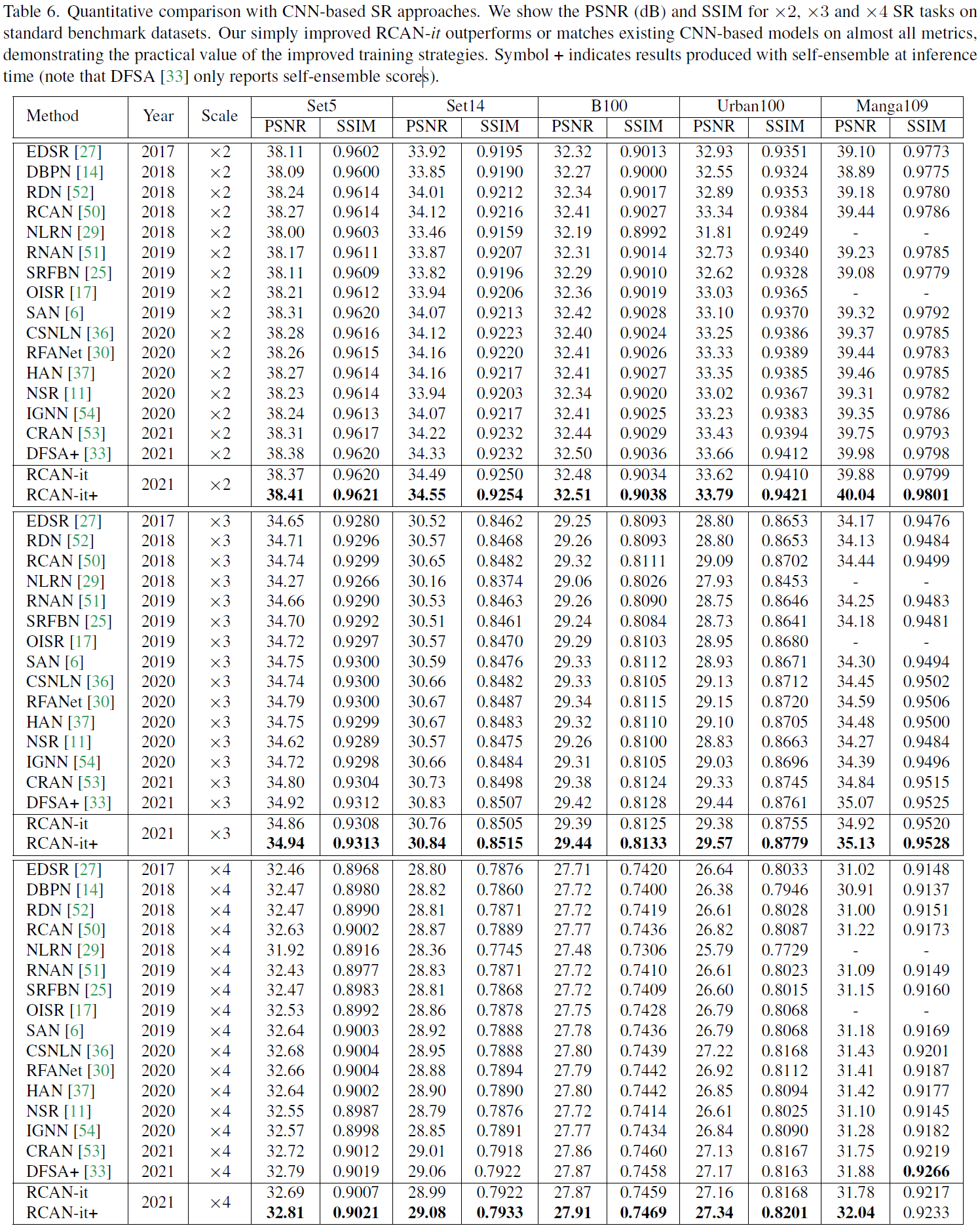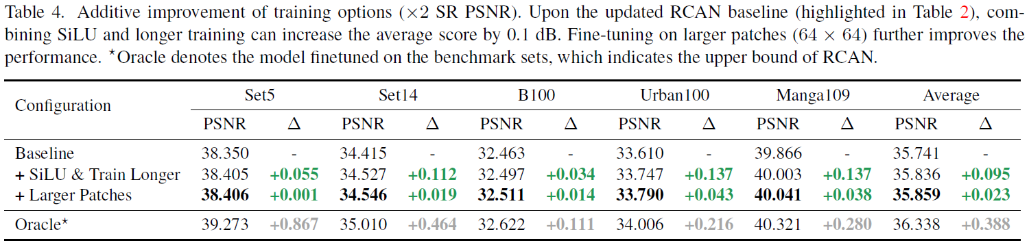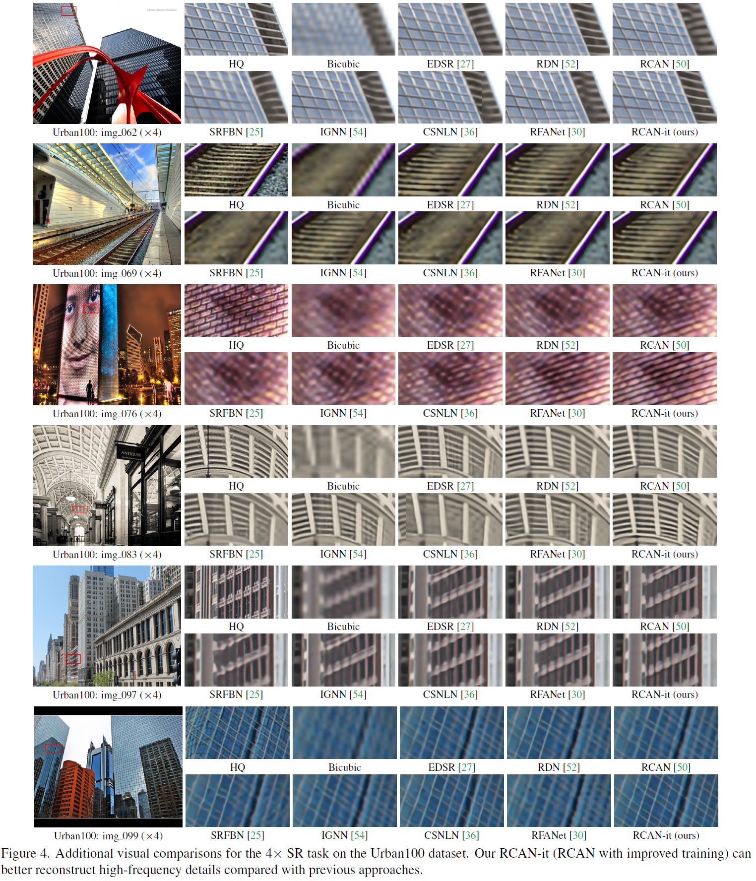 本文的工作,就是重新审视之前的RCAN,然后做实验来规范化SR任务的训练流程。