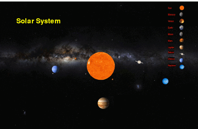 textImage = myfont.render("Solar System", True, (255, 255, 0)) # 太阳系