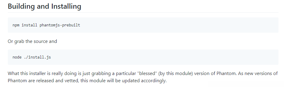 第一步:在git下面找phantomjs-prebuilt,看到了两种安装方式: