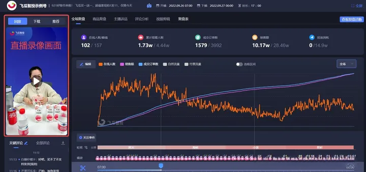 2、组织团队看回放(总结细节),可以用飞瓜智投来回放,他支持全场直播支持高清录制直播原画,并在直播后自动生成直播回放录像