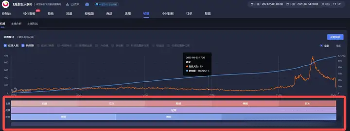那么你该如何考核这些员工呢?可以用飞瓜智投,每场直播可以设置多个岗位轮班,包含主播、主播、场控、中控和投手五个岗位,根据设置的员工轮班时间快速查看对应员工轮班期间直播间数据。