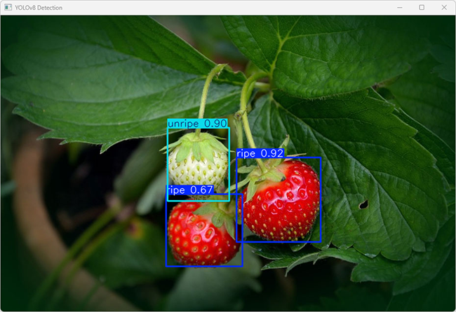 结果(Result):“草莓成熟”,表示系统正在高亮显示检测到的“ripe”。